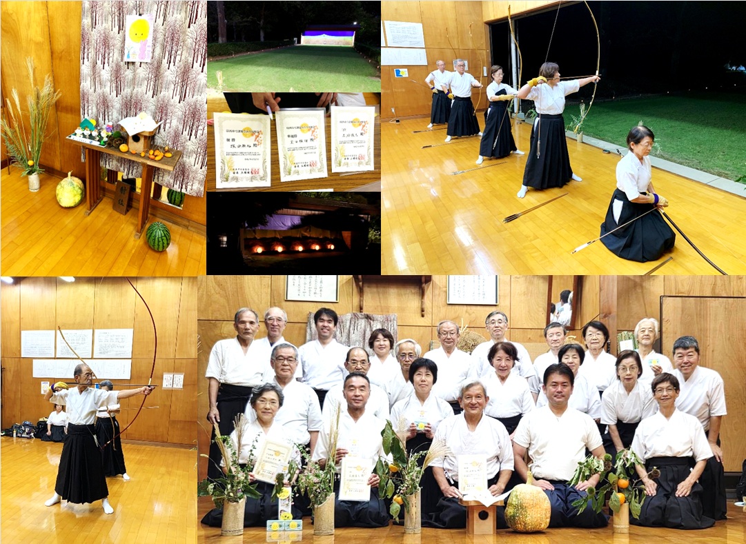 今年は22人が参加し白熱した戦いが繰り広げられ、優勝は4中した塚田雅裕選手に輝きました。また、競射の結果2位に宝田浩揮選手、3位に三須俊夫選手、そして特別に設定された十五夜賞は、15位の小島江津子選手が受賞しました。表彰式では、満月を射抜いた人に贈られる満月賞があったり、たくさんの賞品がもらえるとあって印旛中央公園弓道場は夜遅くまで活気と笑顔に包まれていました。